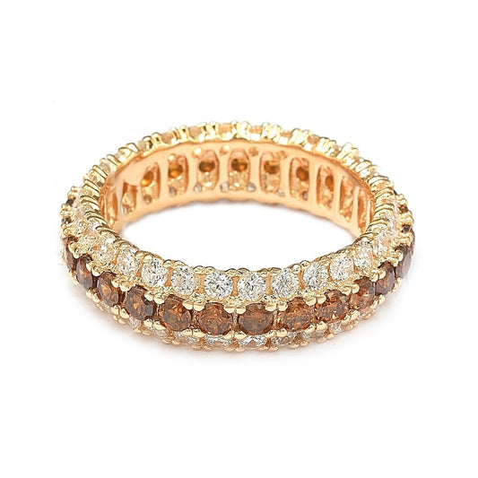 Suzy Levian Rose Sterling Silver Round Cubic Zirconia Champagne and White Eternity Band