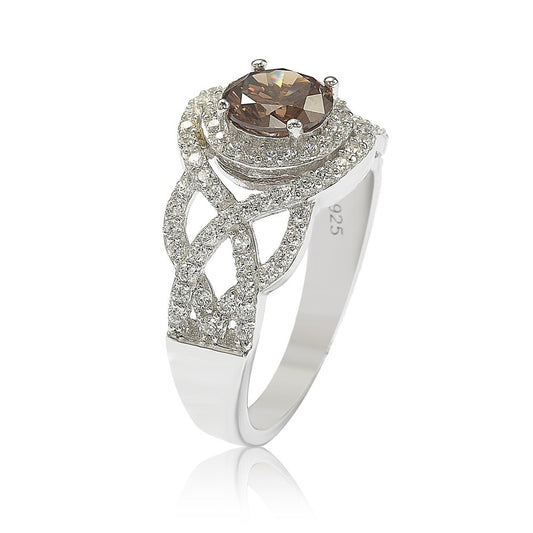 Suzy Levian Sterling Silver Brown Cubic Zirconia Crossover Bridal Ring