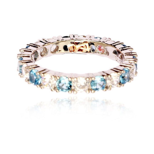 Suzy Levian Sterling Silver Cubic Zirconia Aqua Blue Alternating Eternity Band