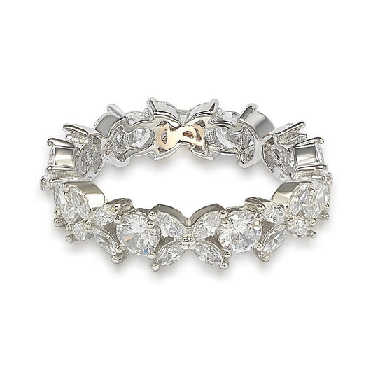 Suzy Levian Sterling Silver Cubic Zirconia Floral Eternity Band