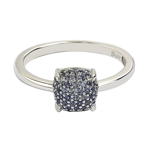 Suzy Levian Sterling Silver Sapphire & Diamond Accent Pave Ball-Top Ring