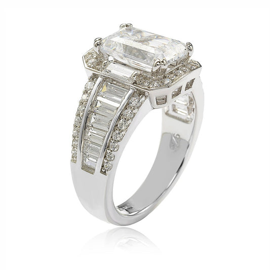 Suzy Levian Sterling Silver White Emerald-Cut Cubic Zirconia Engagement Ring