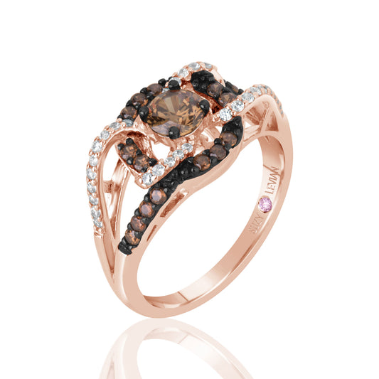 Suzy Levian Brown & White Cubic Zirconia in Rose Sterling Silver Accent Band
