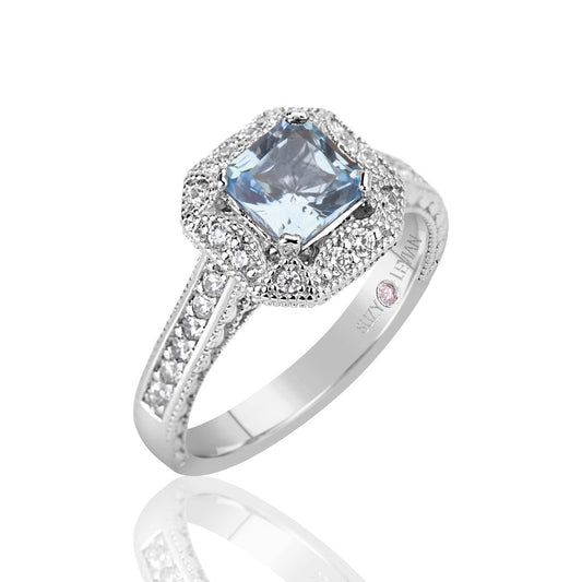 Suzy Levian Sterling Silver Assher Cut Cubic Zirconia Aquamarine Engagement Ring