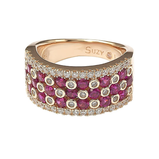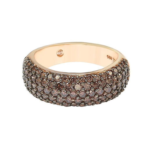 Suzy Levian Brown Cubic Zirconia in Rose Sterling Silver Thick Pave Band