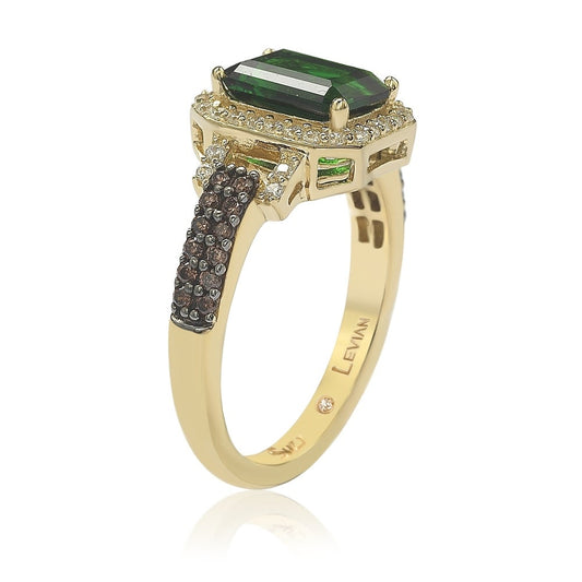 Suzy Levian Golden Sterling Silver Emerald-Cut Green and Brown Cubic Zirconia Halo Ring