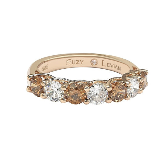 Suzy Levian Brown & White Cubic Zirconia in Rose Sterling Silver Eternity Band