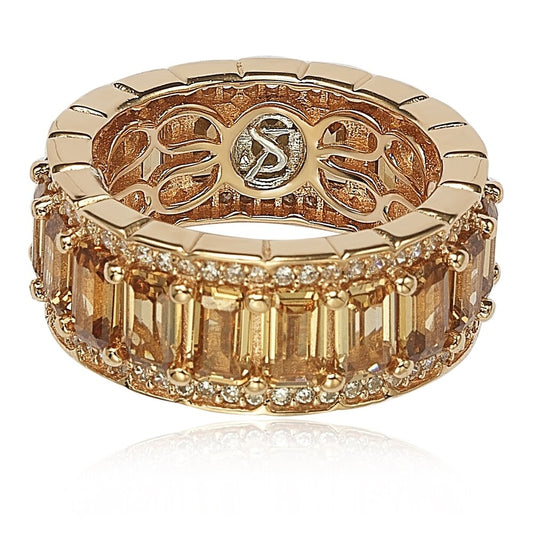Suzy Levian Rose Sterling Silver Cubic Zirconia Brown Emerald Cut Eternity Band