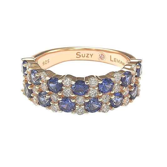 Suzy Levian Rose Sterling Silver Natural Blue Sapphire and Diamond Accent Double Row Band