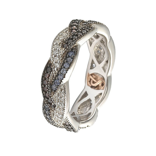 Suzy Levian Rose Sterling Silver Brown Cubic Zirconia Crossing Ring