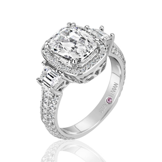 Suzy Levian Sterling White Elongated Cushion Cut Cubic Zirconia Bridal Ring