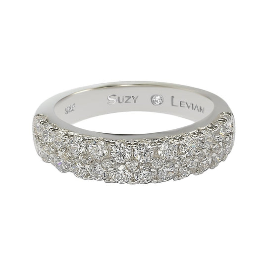 Suzy Levian Sterling Silver White Cubic Zirconia 3-Row Ring