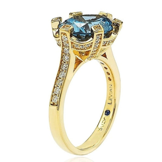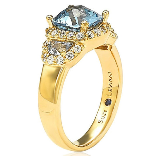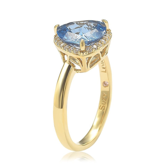 Suzy Levian Gold plated Sterling Silver Blue Cubic Zirconia Ring