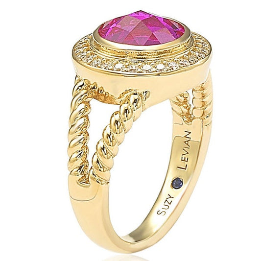 Suzy Levian Yellow Gold Sterling Silver Pink Cubic Zirconia Rope Ring