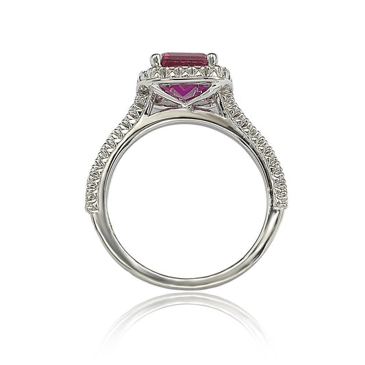 Suzy Levian Sterling Silver Asscher-cut Created Ruby Cubic Zirconia Halo Ring