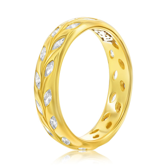 Suzy Levian Yellow Sterling Silver White Cubic Zirconia Leaf Band Ring