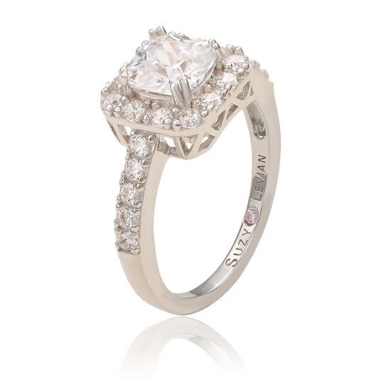 Suzy Levian Sterling Silver Cushion Cut Cubic Zirconia Halo Engagement Ring