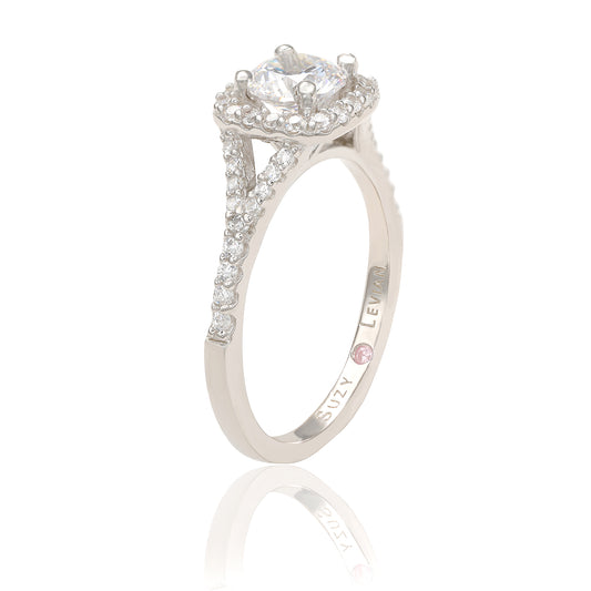 Suzy Levian Sterling Silver White Round Cut Cubic Zirconia Halo Ring