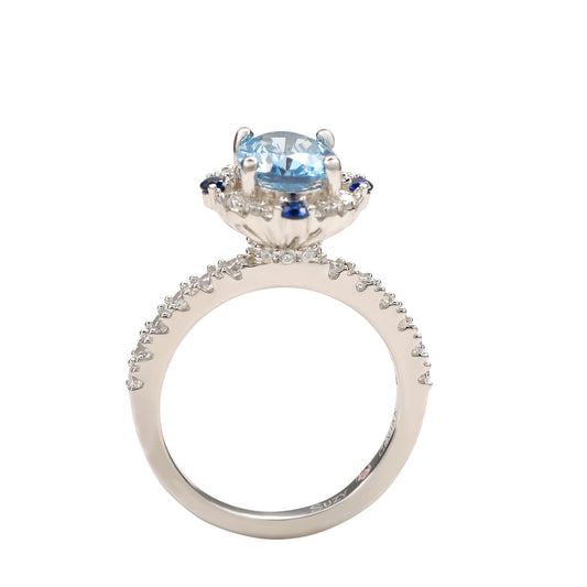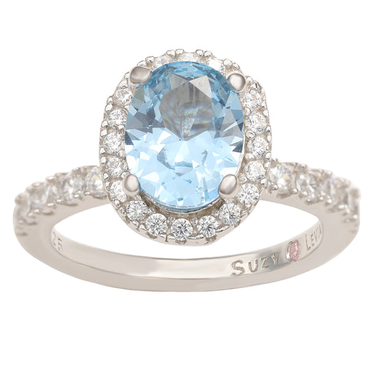 Suzy Levian Sterling Silver Oval Aqua Cubic Zirconia Halo Ring