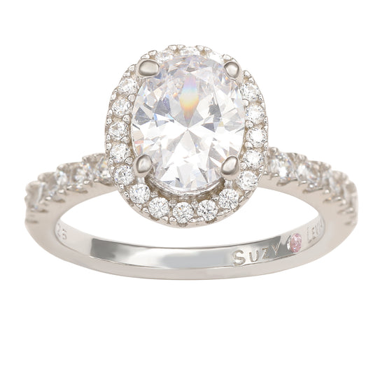 Suzy Levian Sterling Silver Oval White Cubic Zirconia Halo Ring