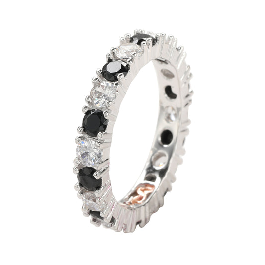 Suzy Levian Sterling Silver Cubic Zirconia Black Alternating Eternity Band