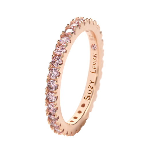 Suzy Levian Rose Sterling Silver Thin Pink Cubic Zirconia Eternity Band