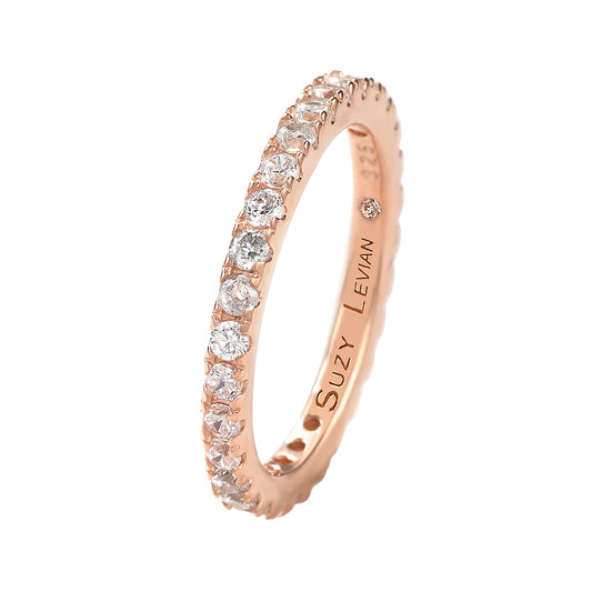 Suzy Levian Rose Sterling Silver Thin White Cubic Zirconia Eternity Band