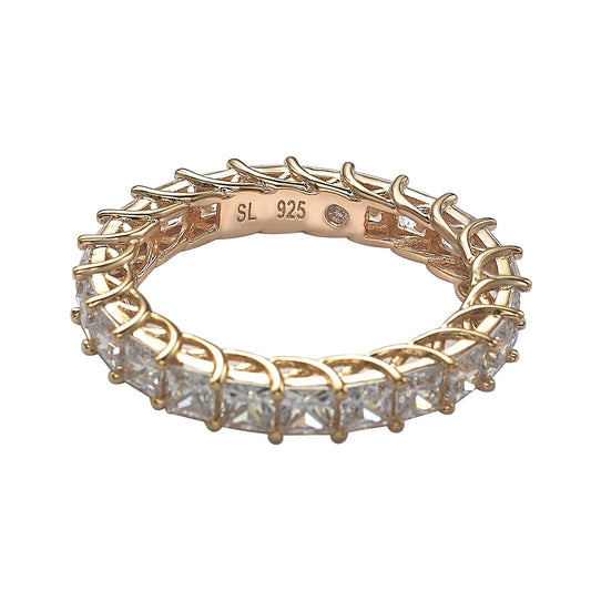 Suzy Levian Rose Sterling Silver Princess Cut Cubic Zirconia Crossing Setting Eternity Band
