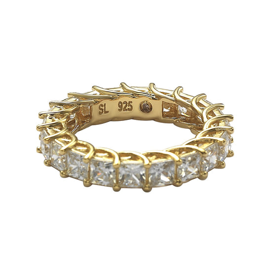 Suzy Levian Yellow Sterling Silver Princess Cut Cubic Zirconia Crossing Setting Eternity Band