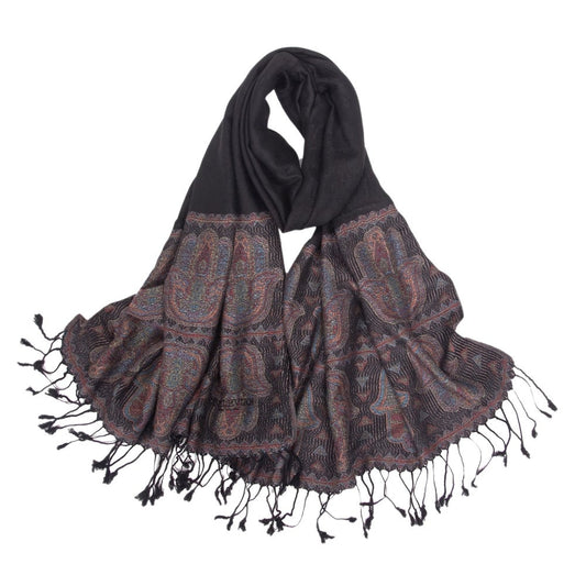 Suzy Levian Women's Lightweight Hamsa Black Scarf