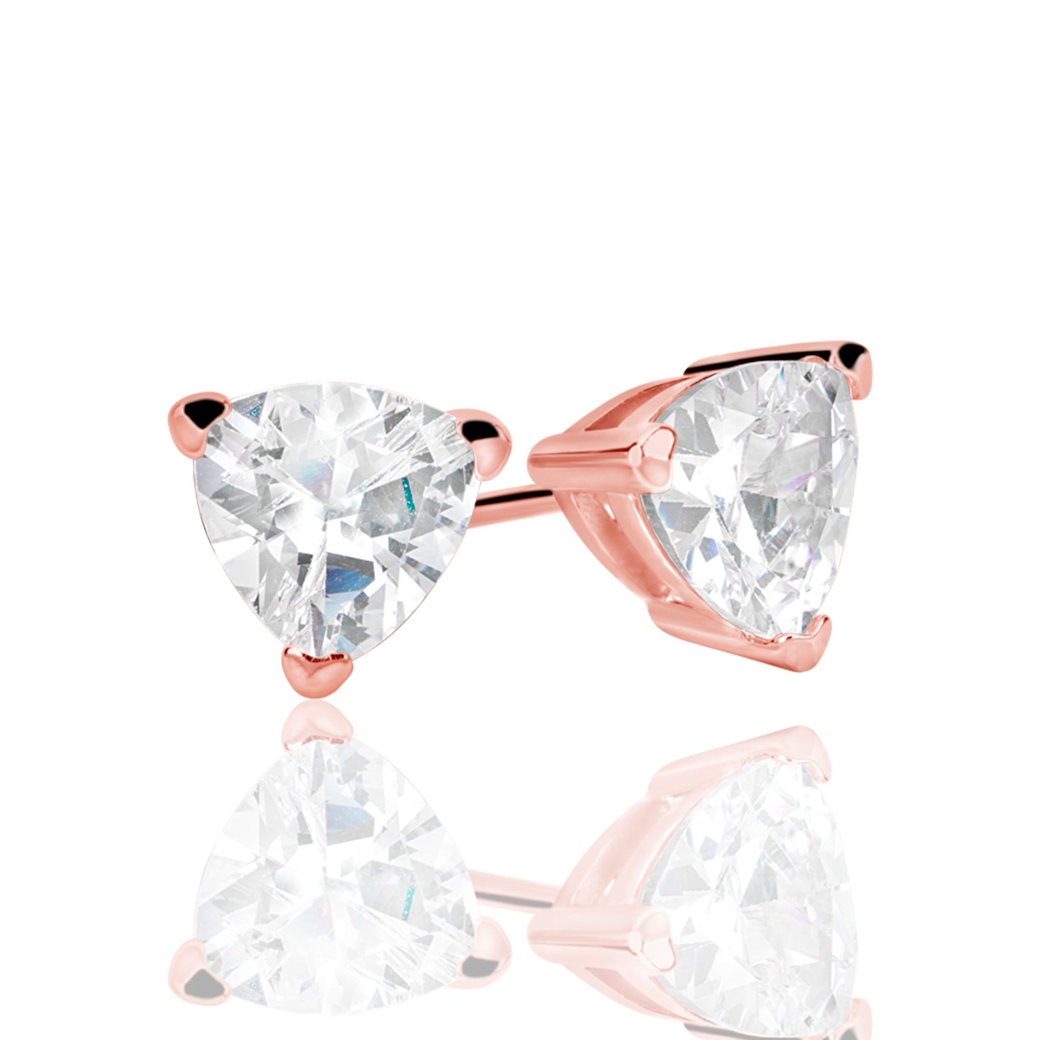 Suzy Levian Rose Sterling Silver Trillion Shape Cubic Zirconia Studs