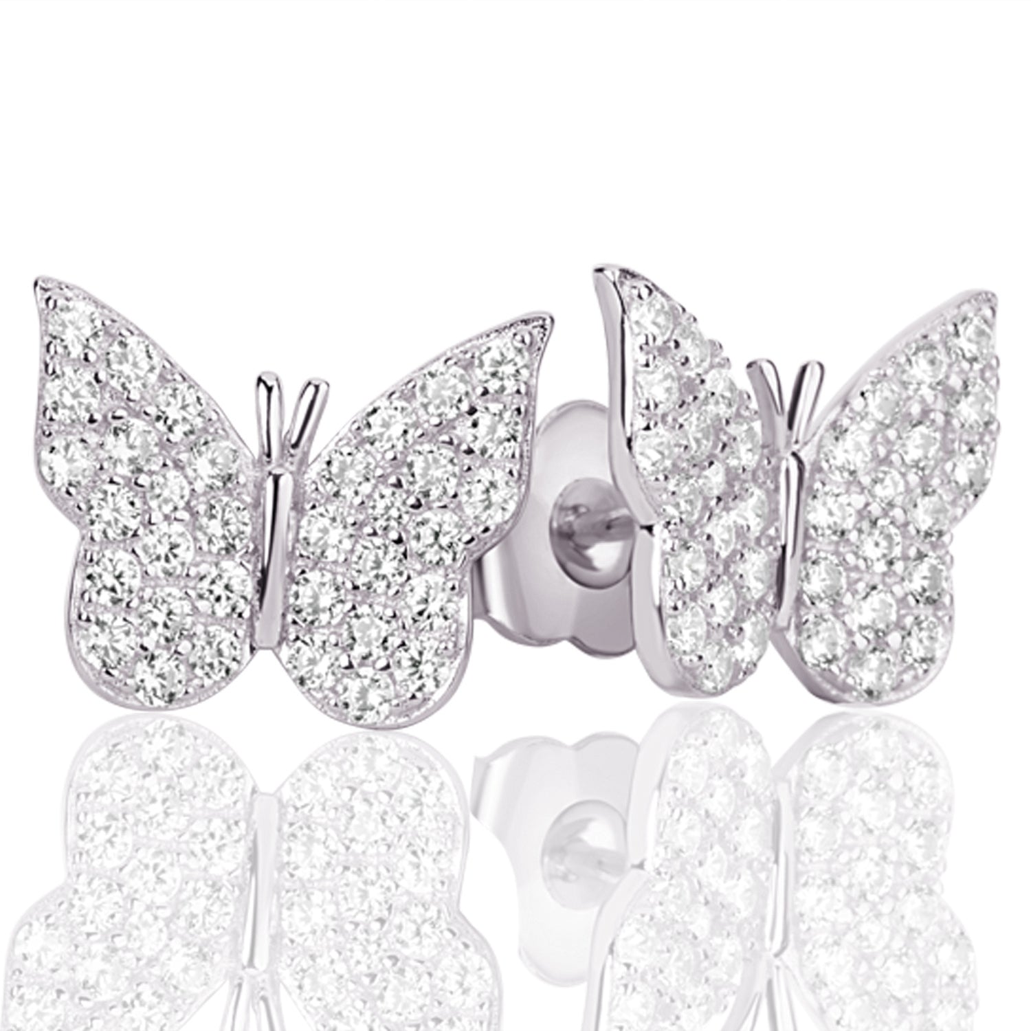 Suzy Levian Sterling Silver Pave Cubic Zirconia Butterfly Earrings