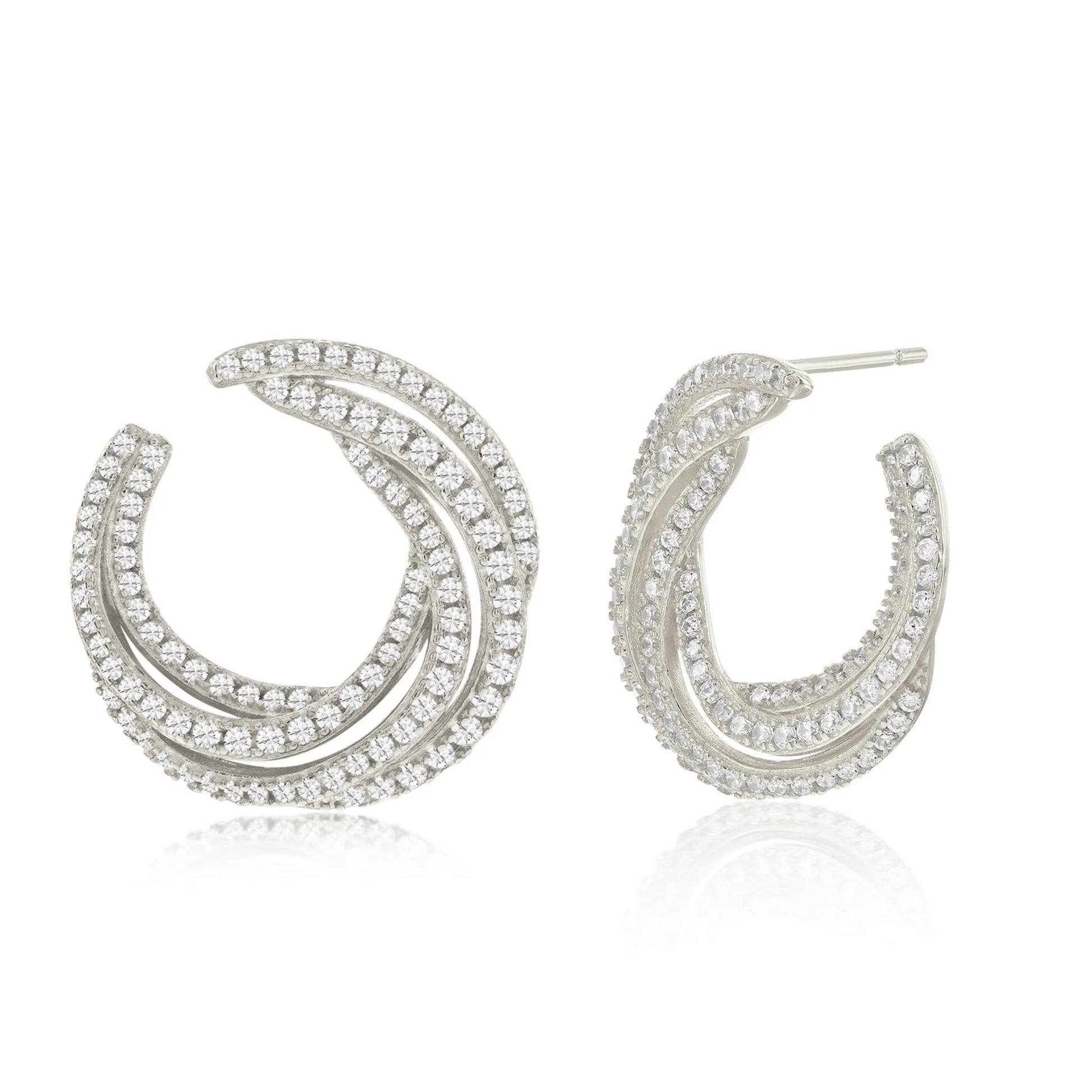 Suzy Levian Sterling Silver White Cubic Zirconia Open Circle Pave Earrings