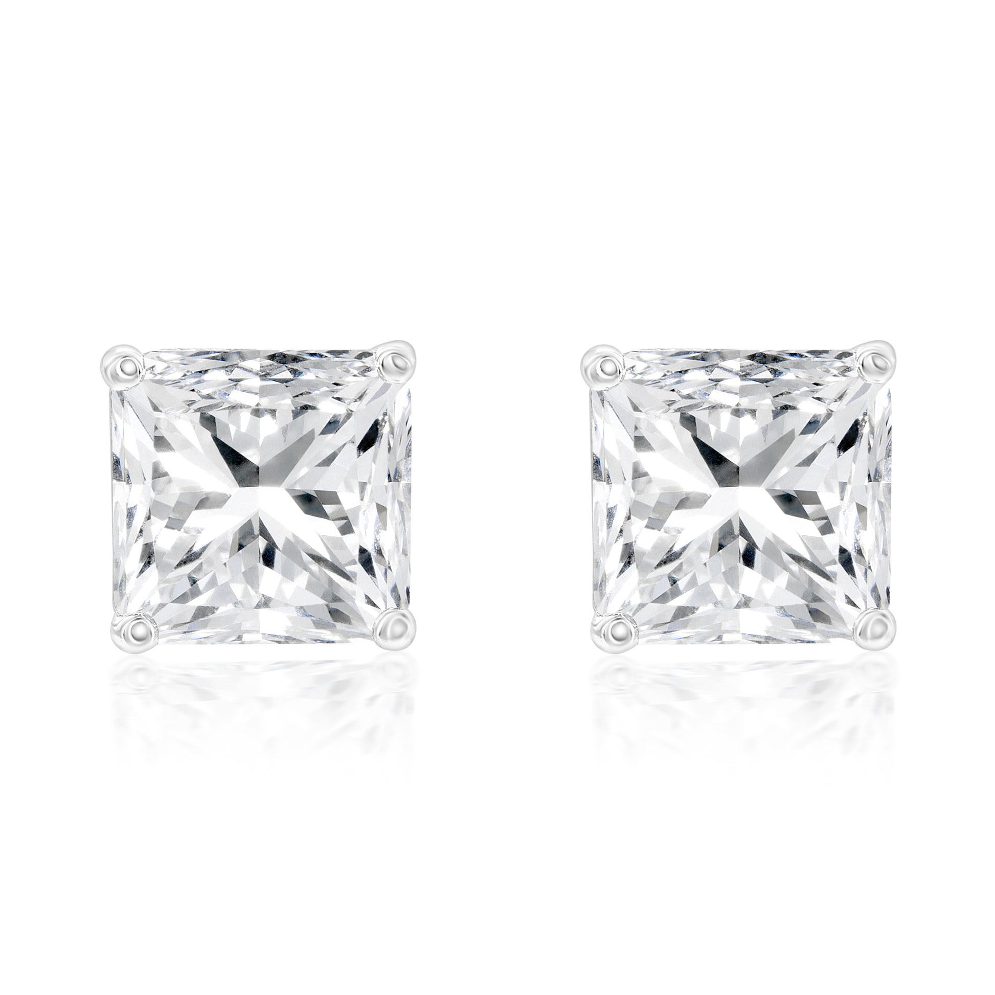 Suzy Levian White Sterling Silver Asscher-Cut Cubic Zirconia 8mm 4 cttw Stud Earrings