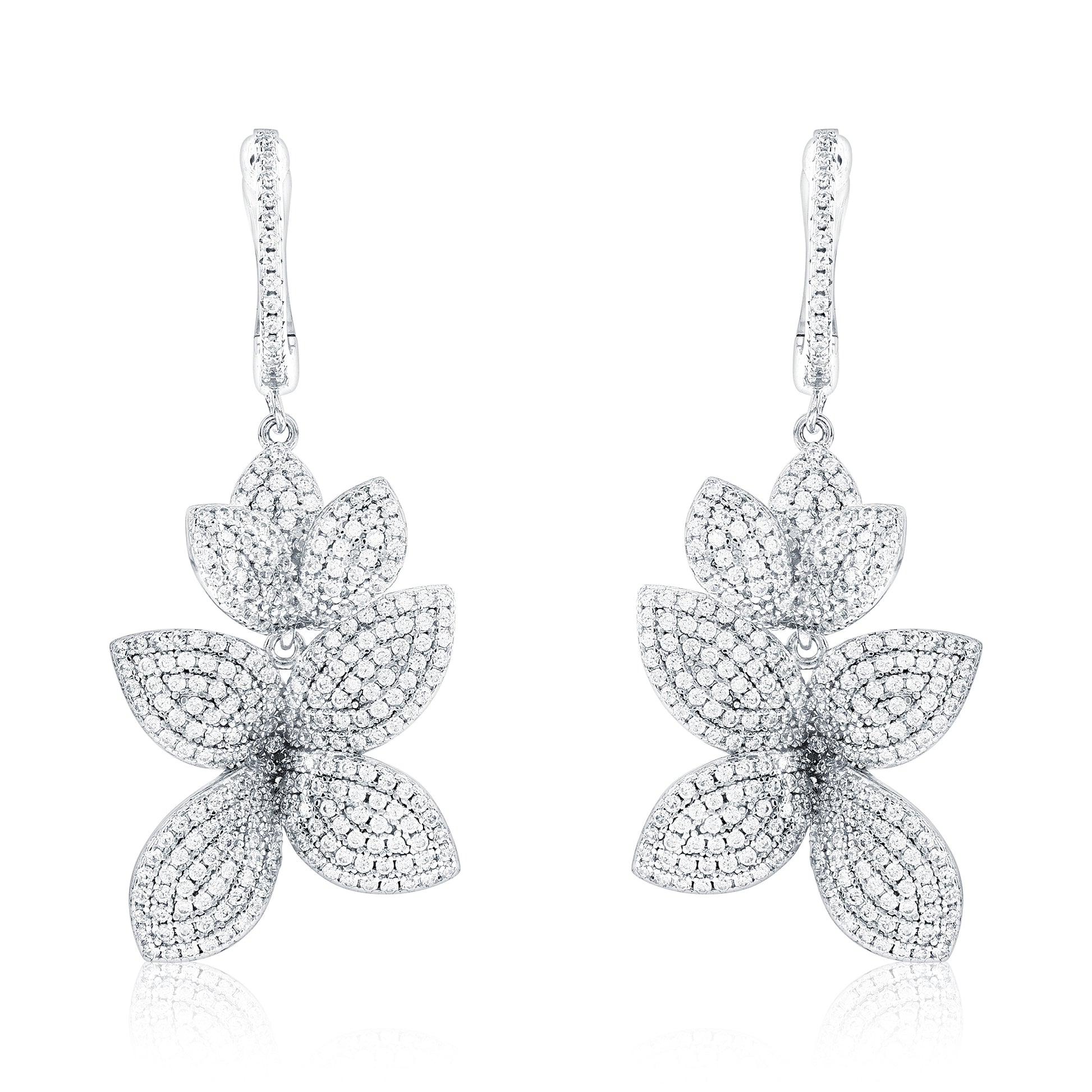 Suzy Levian Sterling Silver White Cubic Zirconia Large Abstract Pave Flower Drop Earrings