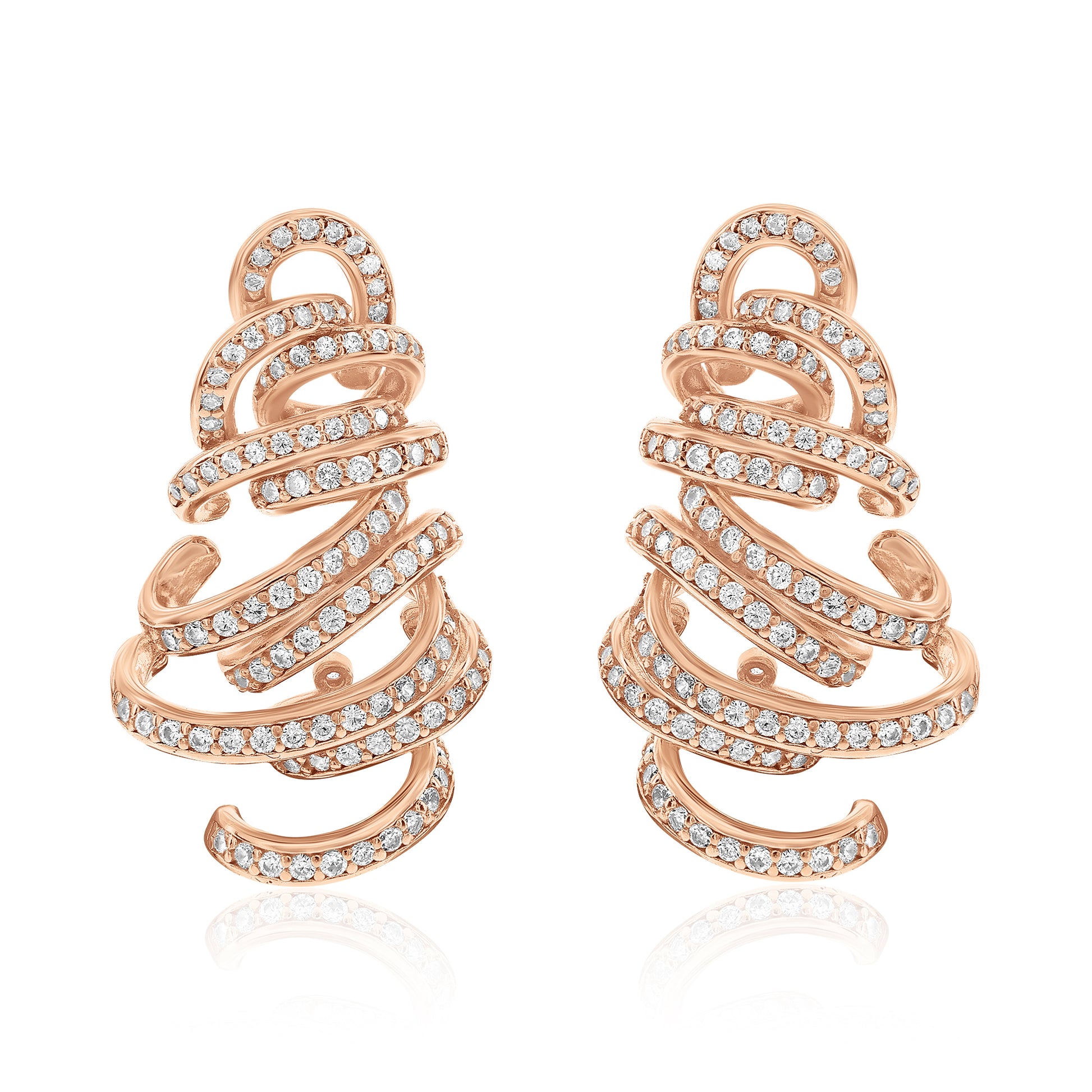 Suzy Levian Rose Sterling Silver Pave White Cubic Zirconia Spiral Earrings