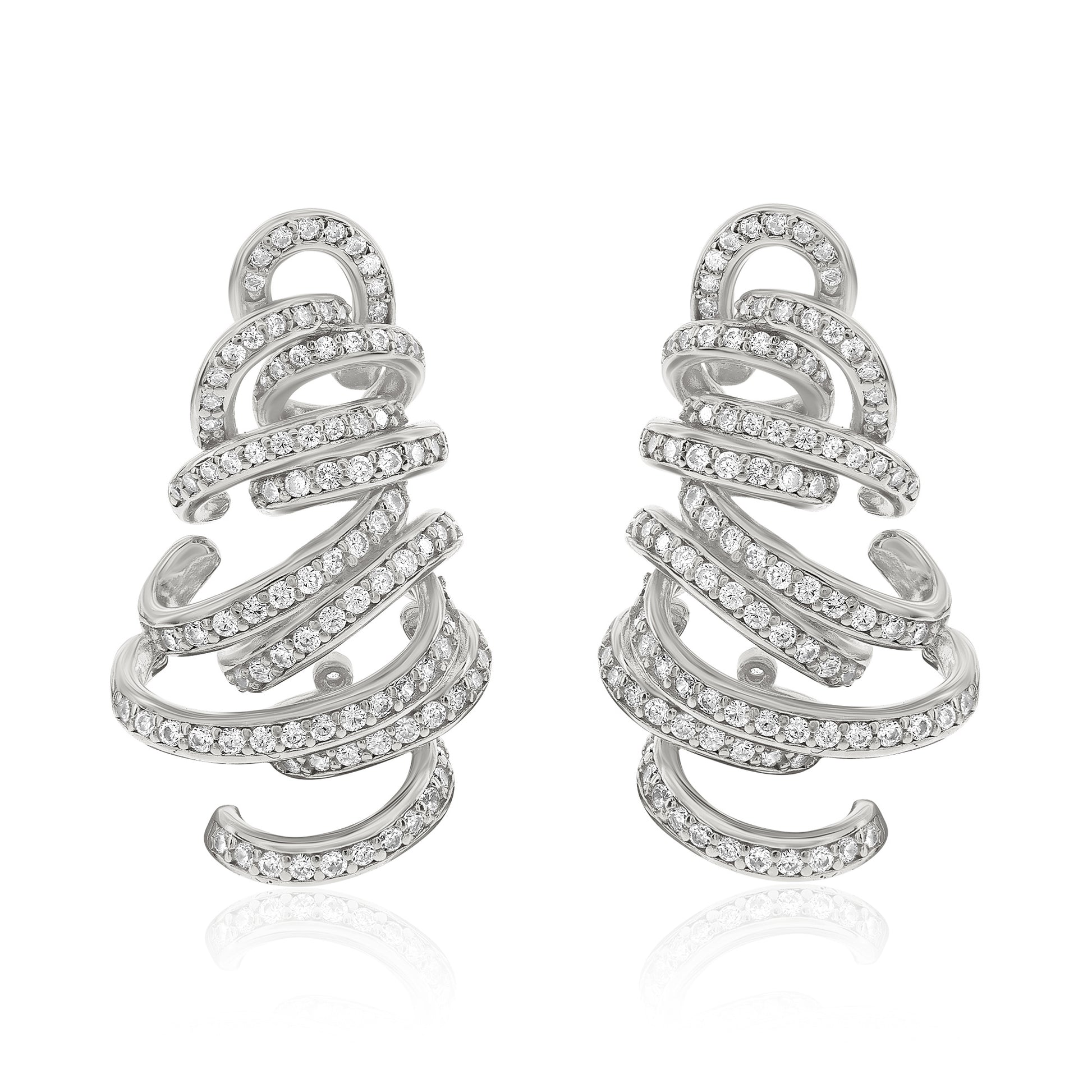 Suzy Levian White Sterling Silver Pave White Cubic Zirconia Spiral Earrings