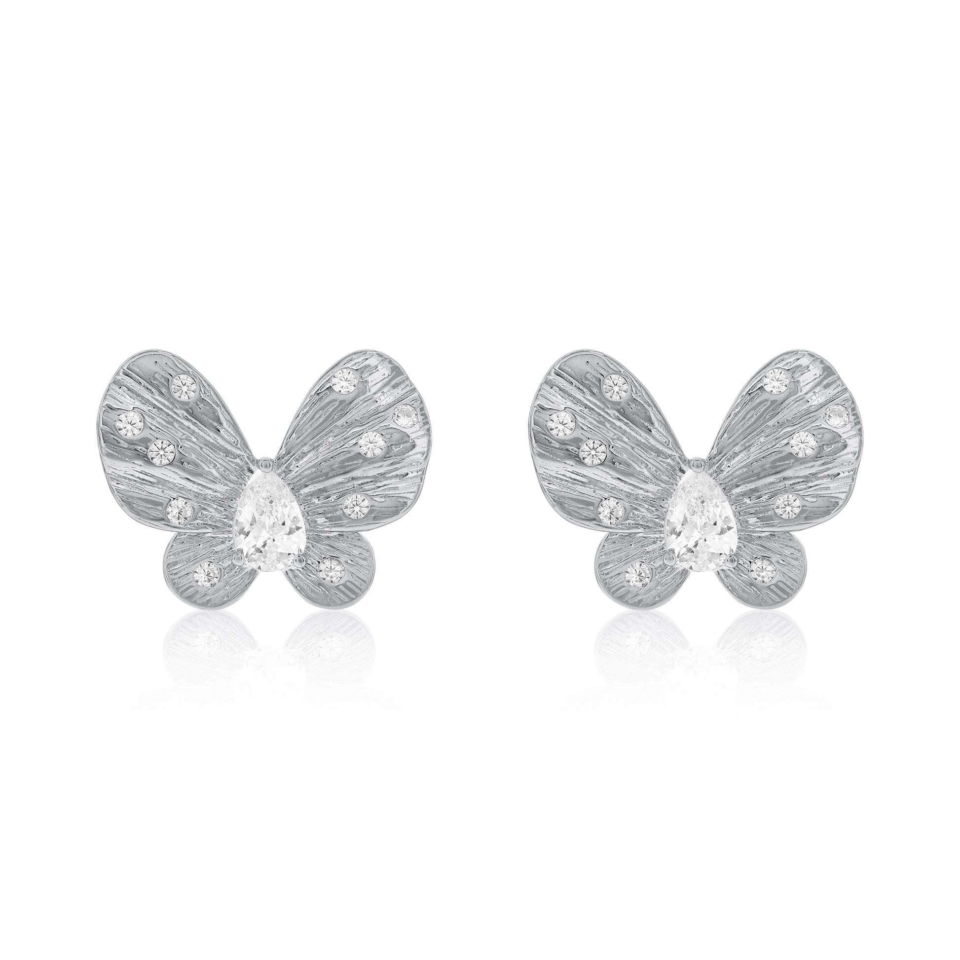 Suzy Levian Sterling Silver & White Cubic Zirconia Angled Butterfly Earrings