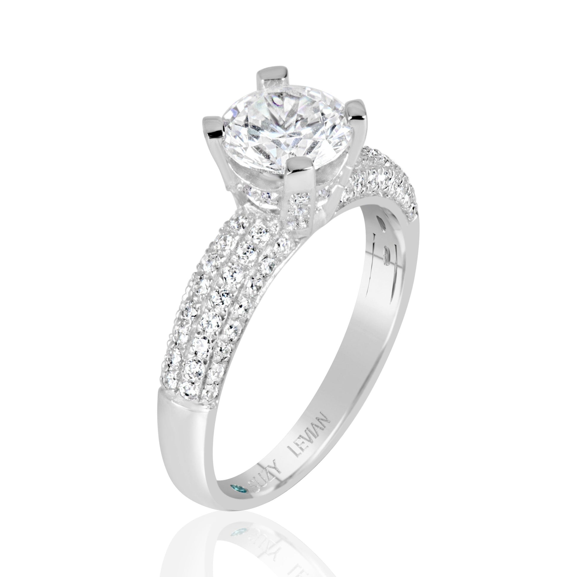 Don't wait for the question, say yes now to this round cut, white pave cubic zirconia bridal ring, hand set in sterling silver with a special Suzy Levian signature secret cubic zirconia Inside.