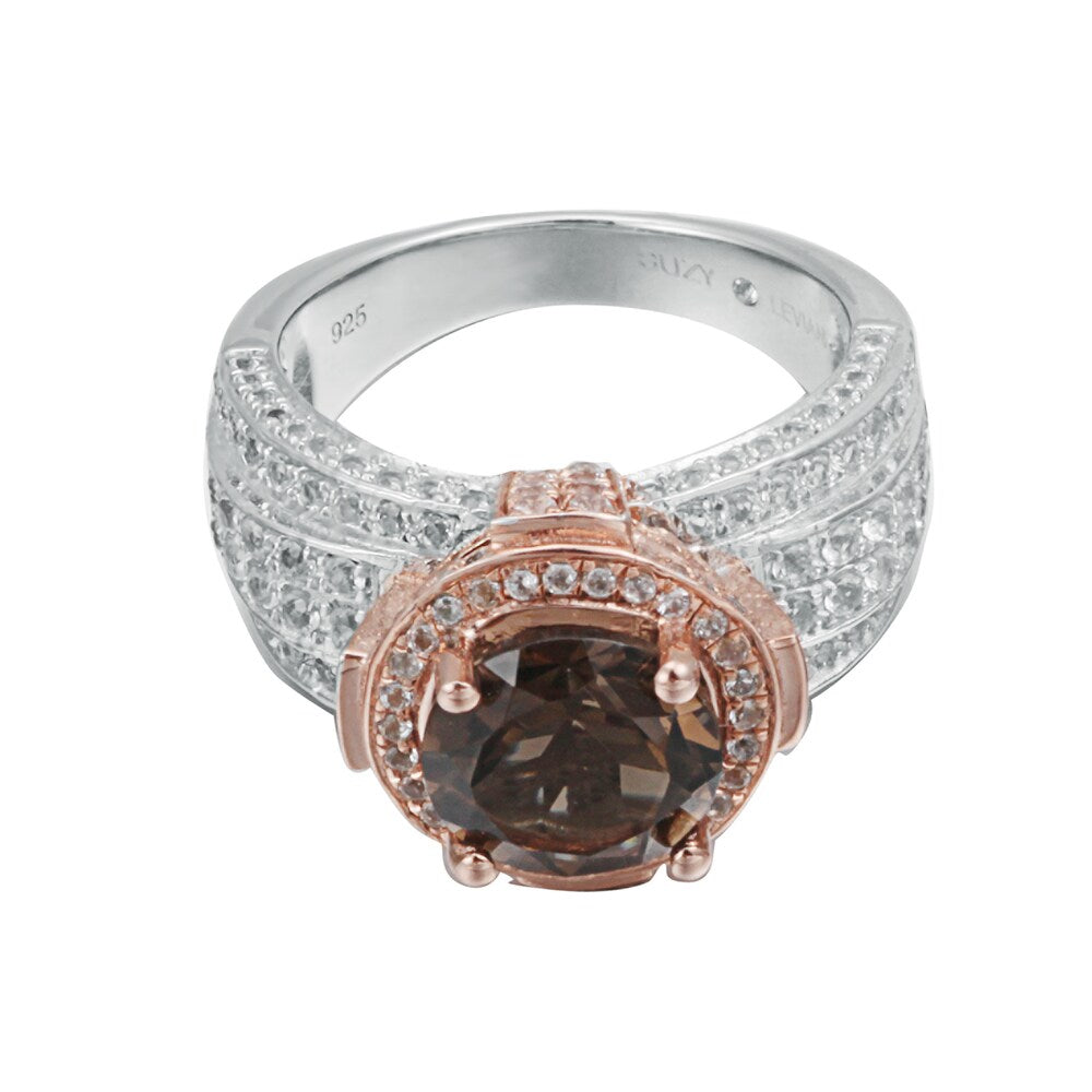 Suzy Levian Two-Tone Sterling Silver Round 4.85 cttw Smoky Quartz Ring