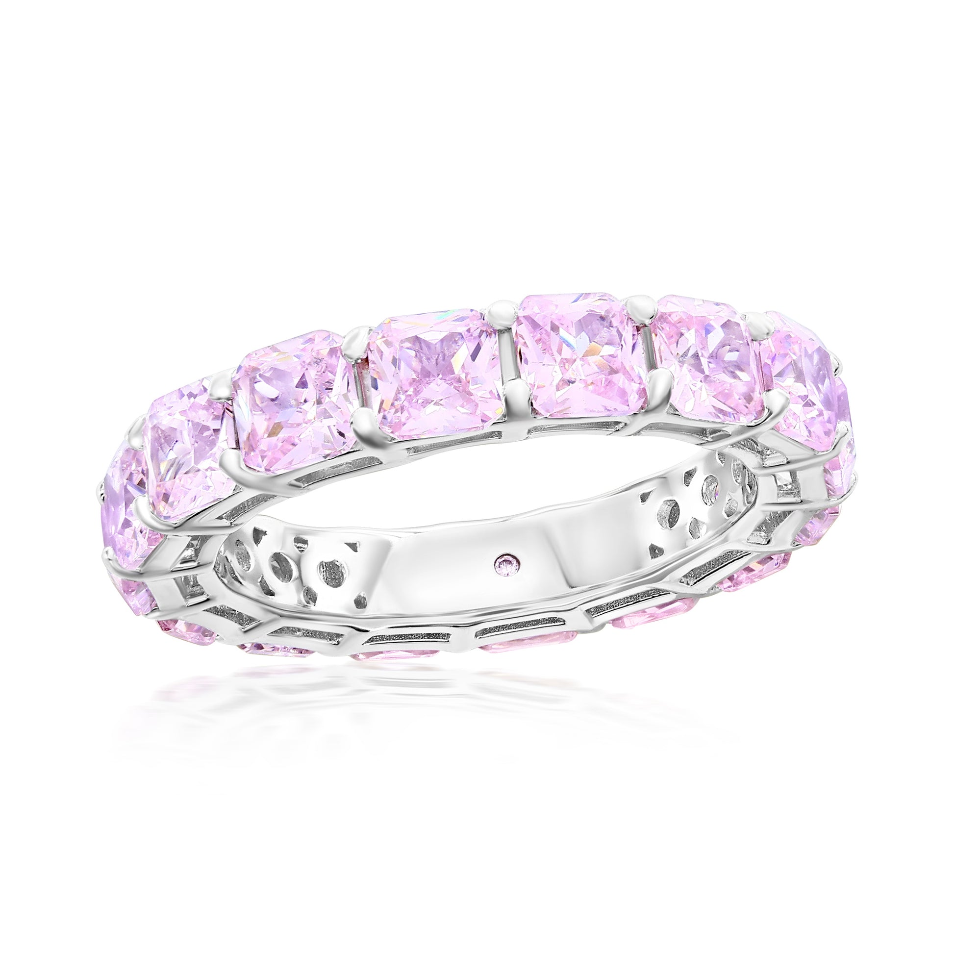 Suzy Levian Sterling Silver Cubic Zirconia Pink Cushion Cut Eternity Band