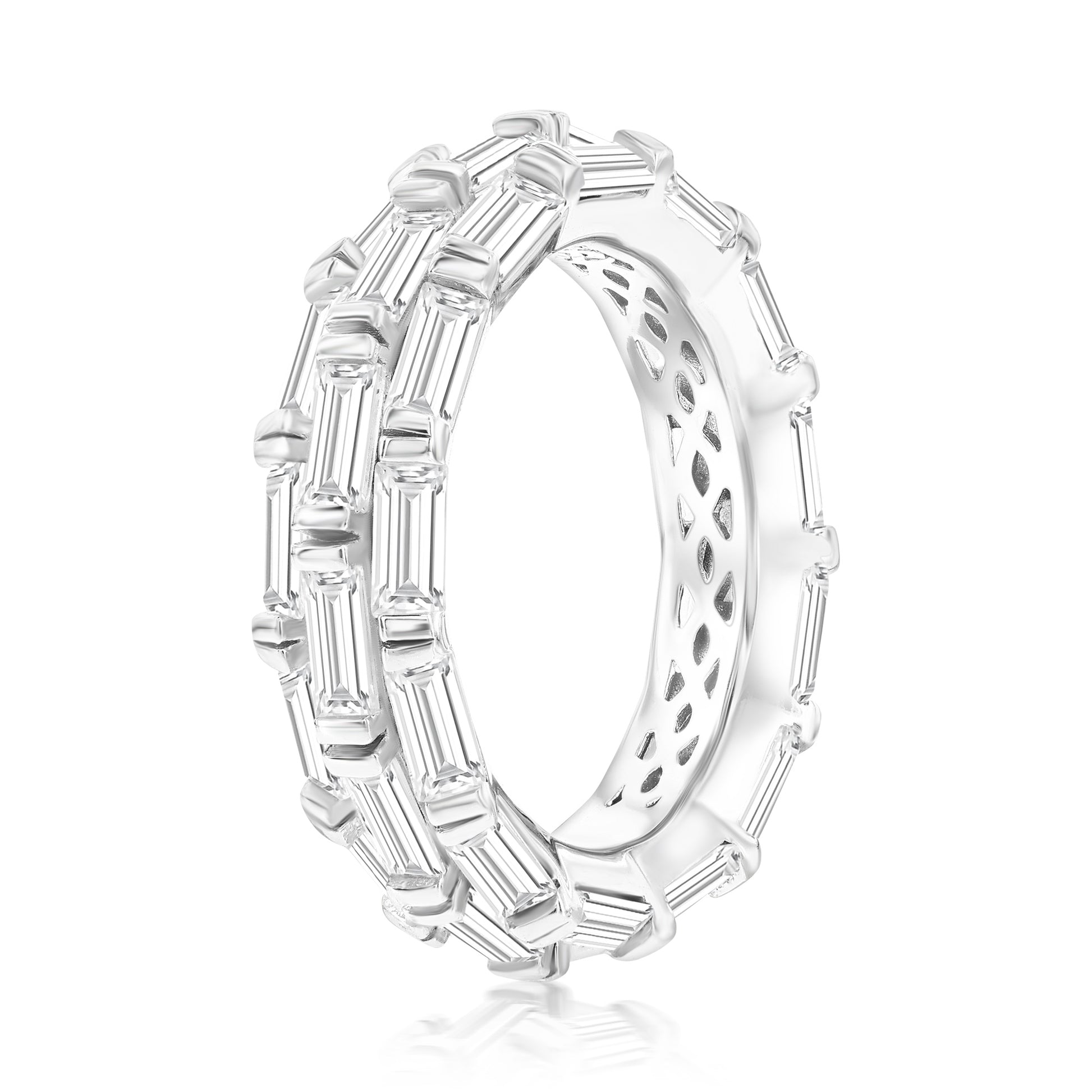 Suzy Levian Sterling Silver Cubic Zirconia White Baguette Three Row Eternity Band