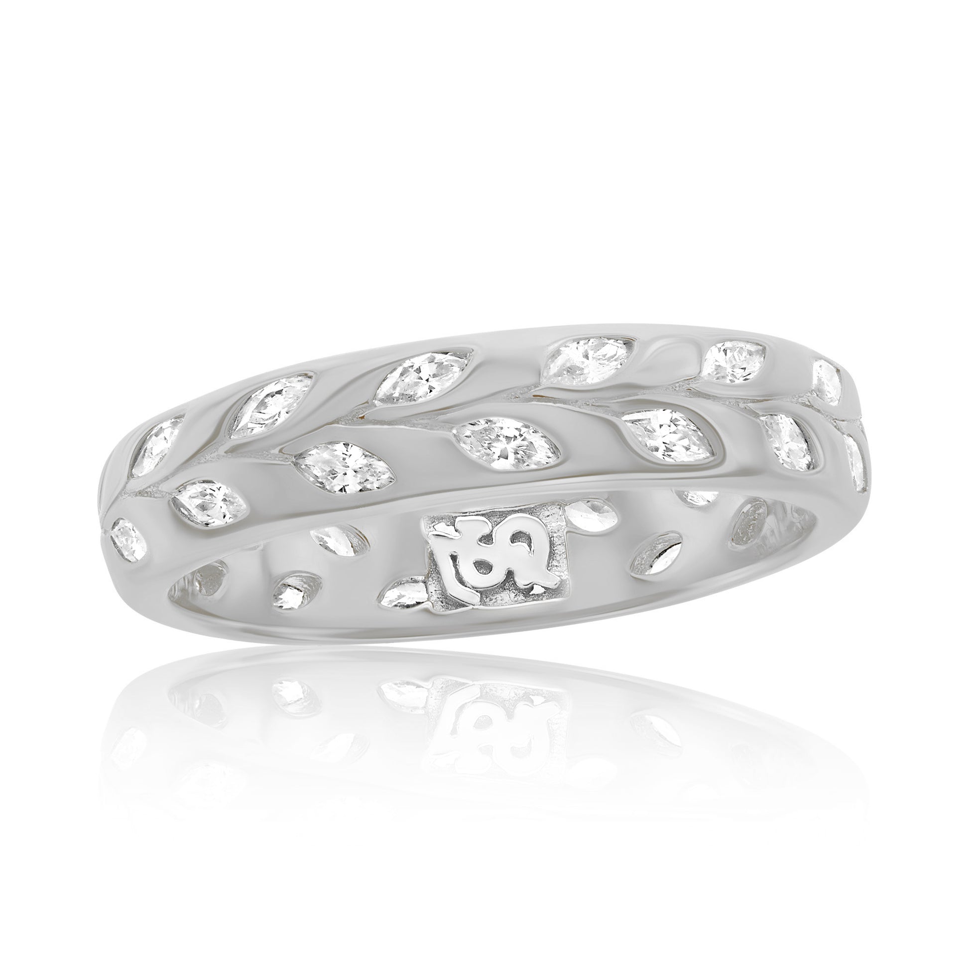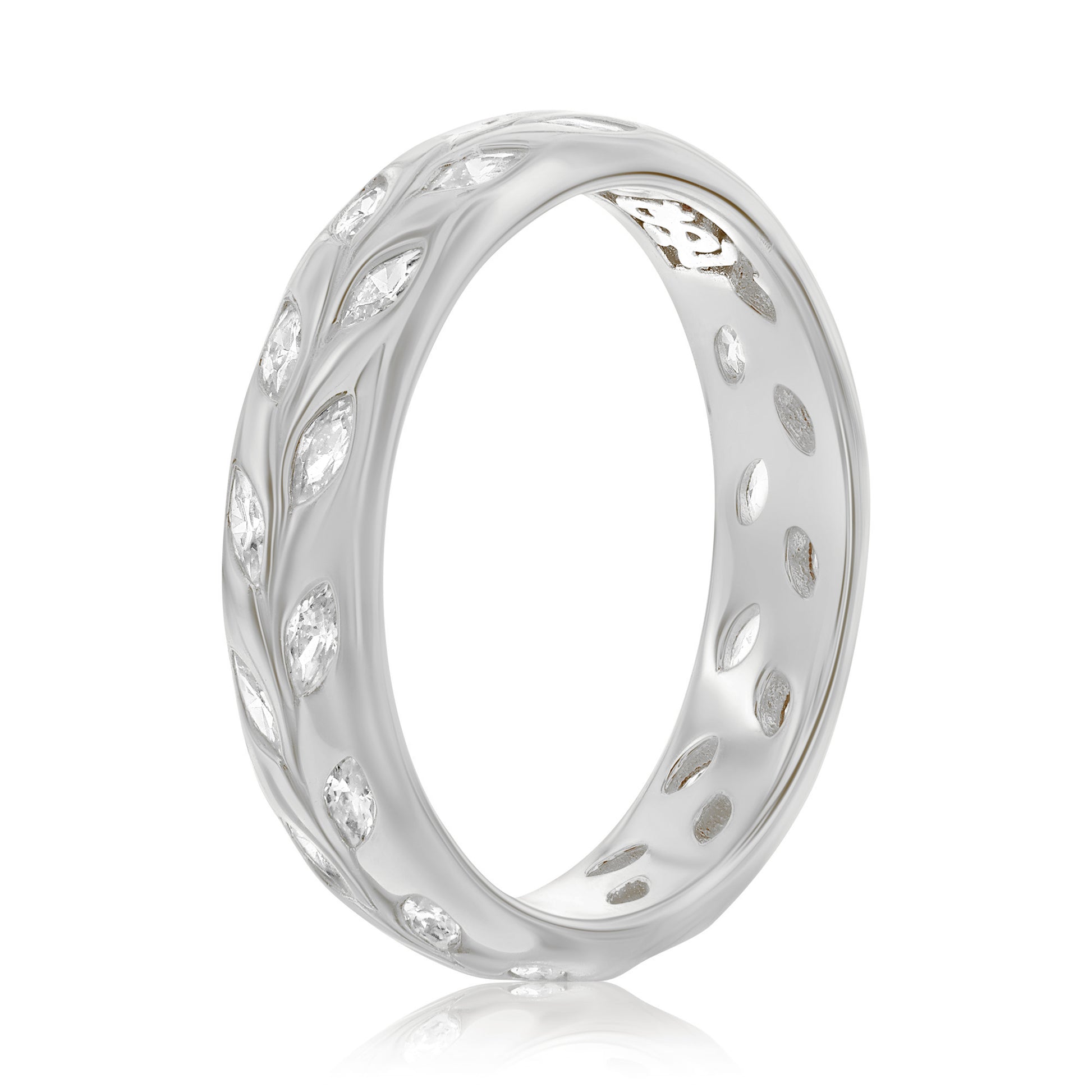 Suzy Levian Sterling Silver White Cubic Zirconia Leaf Band Ring