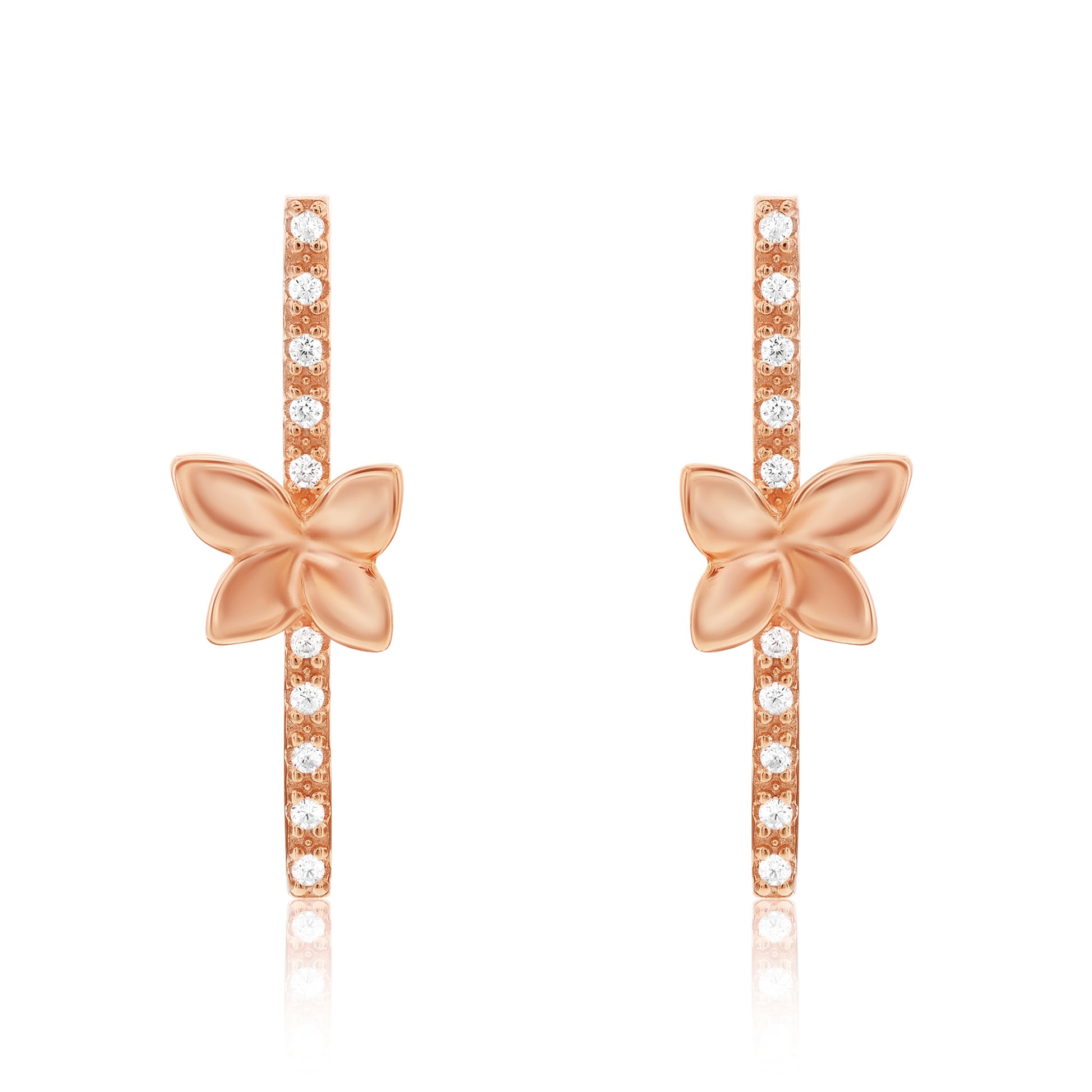 A touch of dazzle and a lot of style, these flower accent line drop earrings add a fashionable touch to any attire. Sleek and polished in 925 rose sterling silver, these stylish earrings showcase a glittering vertical line of round cut white cubic zirconia's with a solid yellow sterling silver flower set in the middle of each earring. Fastening with a secure butterfly closure, these earrings elevate any look. These earrings are designed by Suzy Levian and fashioned to empower women. These dazzling earrings are sure to make you feel elegant, classy and beautiful.