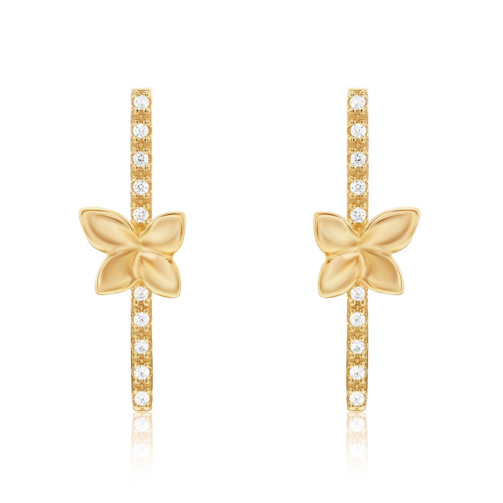 A touch of dazzle and a lot of style, these flower accent line drop earrings add a fashionable touch to any attire. Sleek and polished in 925 yellow sterling silver, these stylish earrings showcase a glittering vertical line of round cut white cubic zirconias with a solid yellow sterling silver flower set in the middle of each earring. Fastening with a secure butterfly closure, these earrings elevate any look. These earrings are designed by Suzy Levian and fashioned to empower women. These dazzling earrings are sure to make you feel elegant, classy and beautiful.