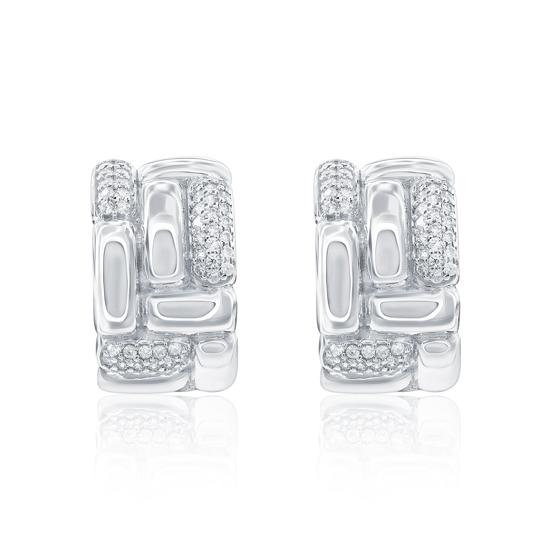 Suzy Levian Sterling Silver & White Cubic Zirconia Pave Checkered Woven Huggie Hoop Earrings