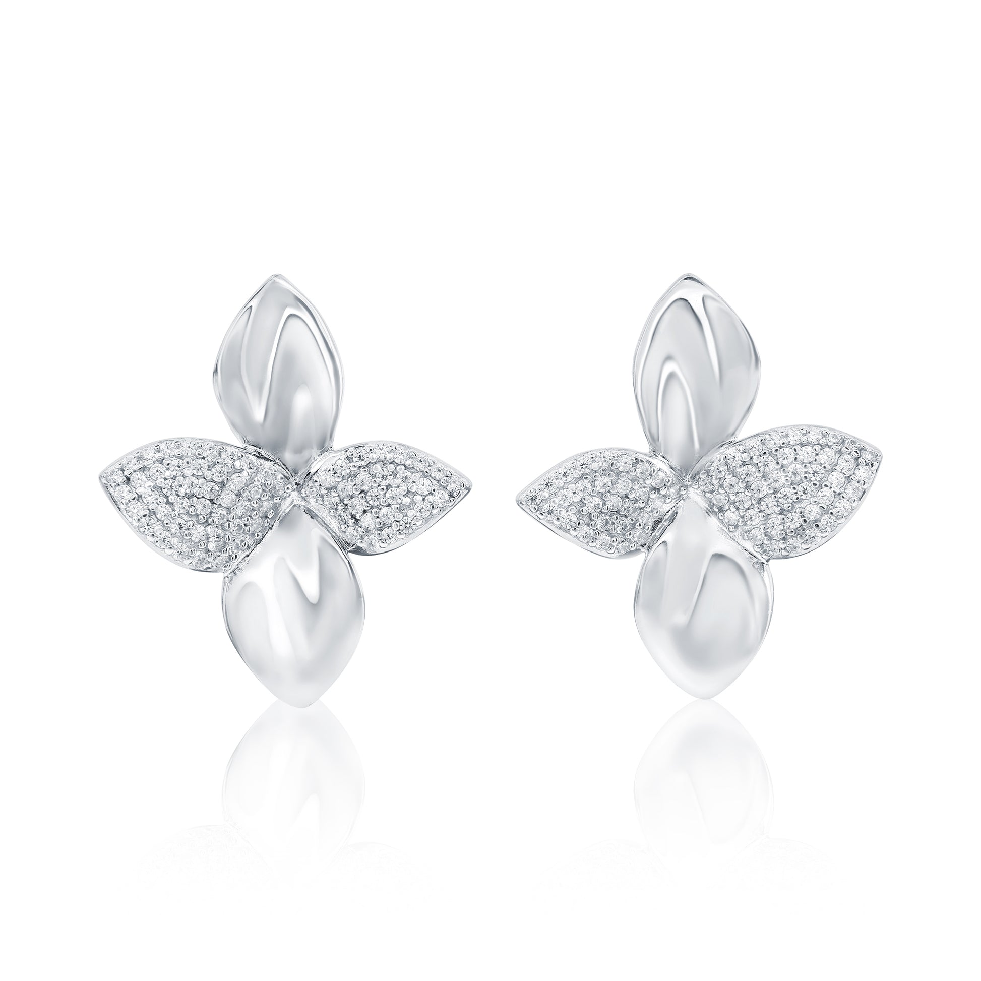 Share Suzy Levian White Sterling Silver White Cubic Zirconia Pave Abstract Flower Petal Earrings