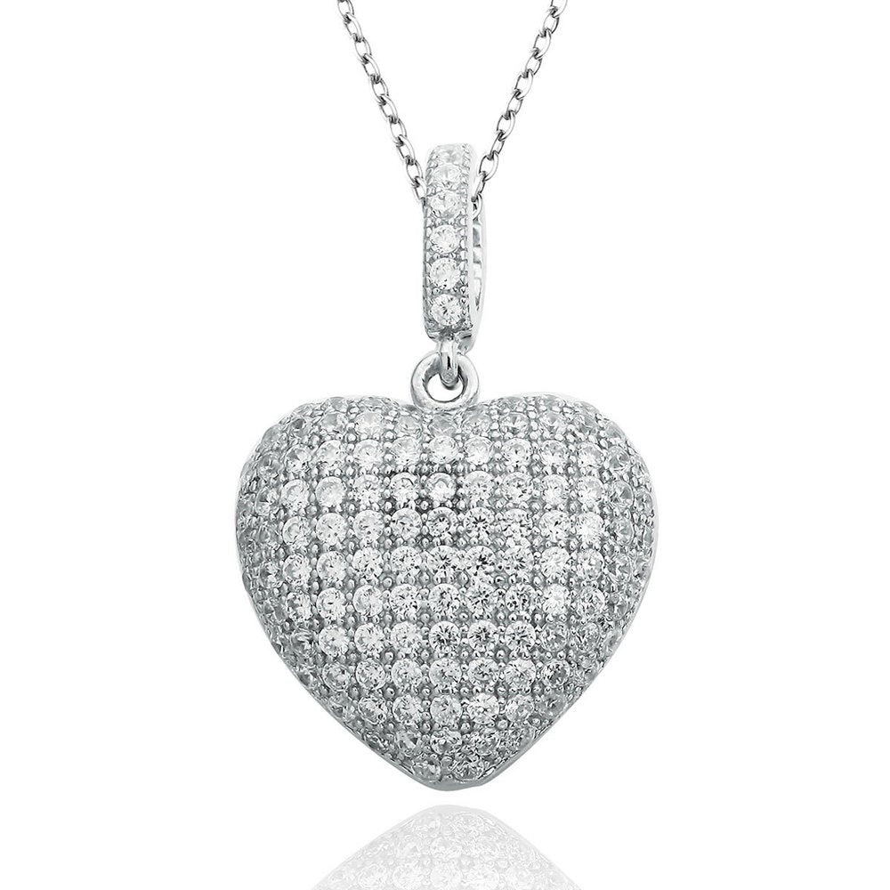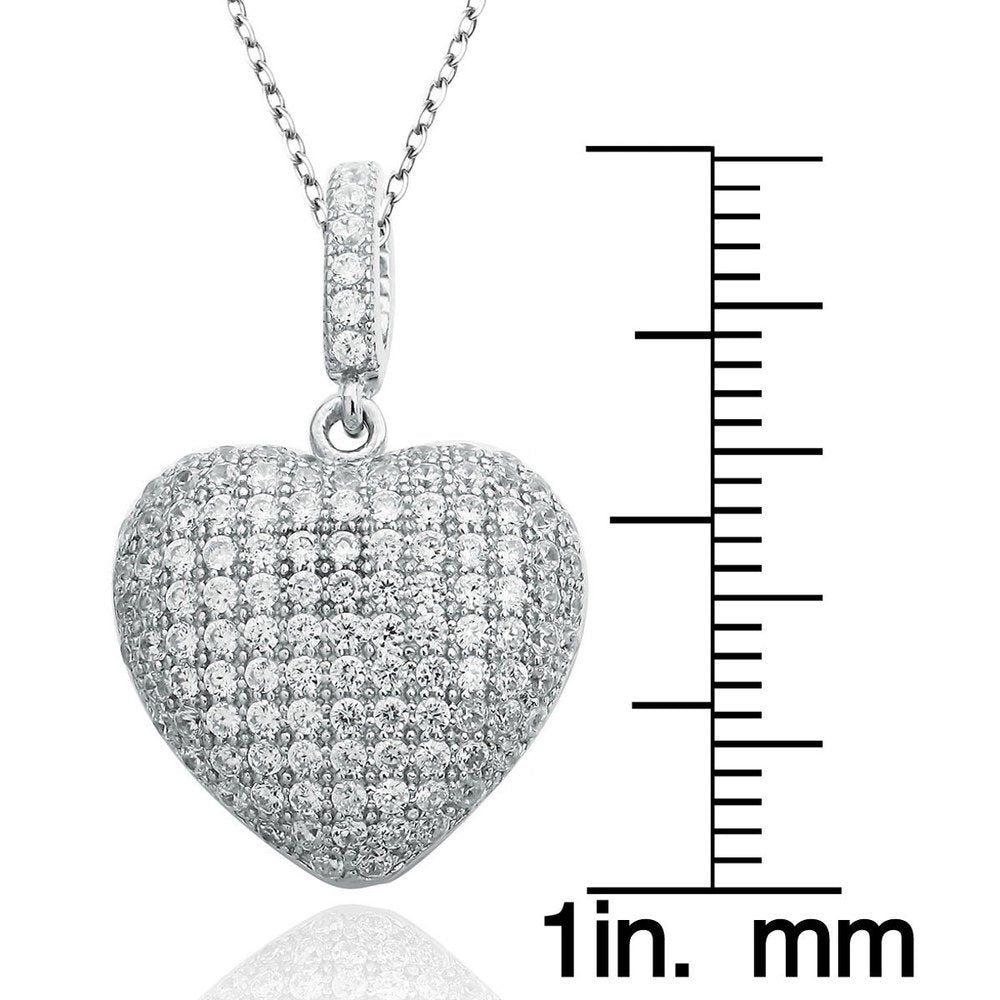 Enthusiasm for style created from the heart. Nothing spells out love better than a gorgeous heart pendant featuring pave white cubic zirconia, hand set in sterling silver. The pendant is hung on an 18-inch cable chain that secures with a spring ring clasp. It's the perfect gift for anyone with an upcoming anniversary, birthday, graduation or just a simple "I love you" gift. Every girl wants to feel loved and there is no better way to say than to give it.