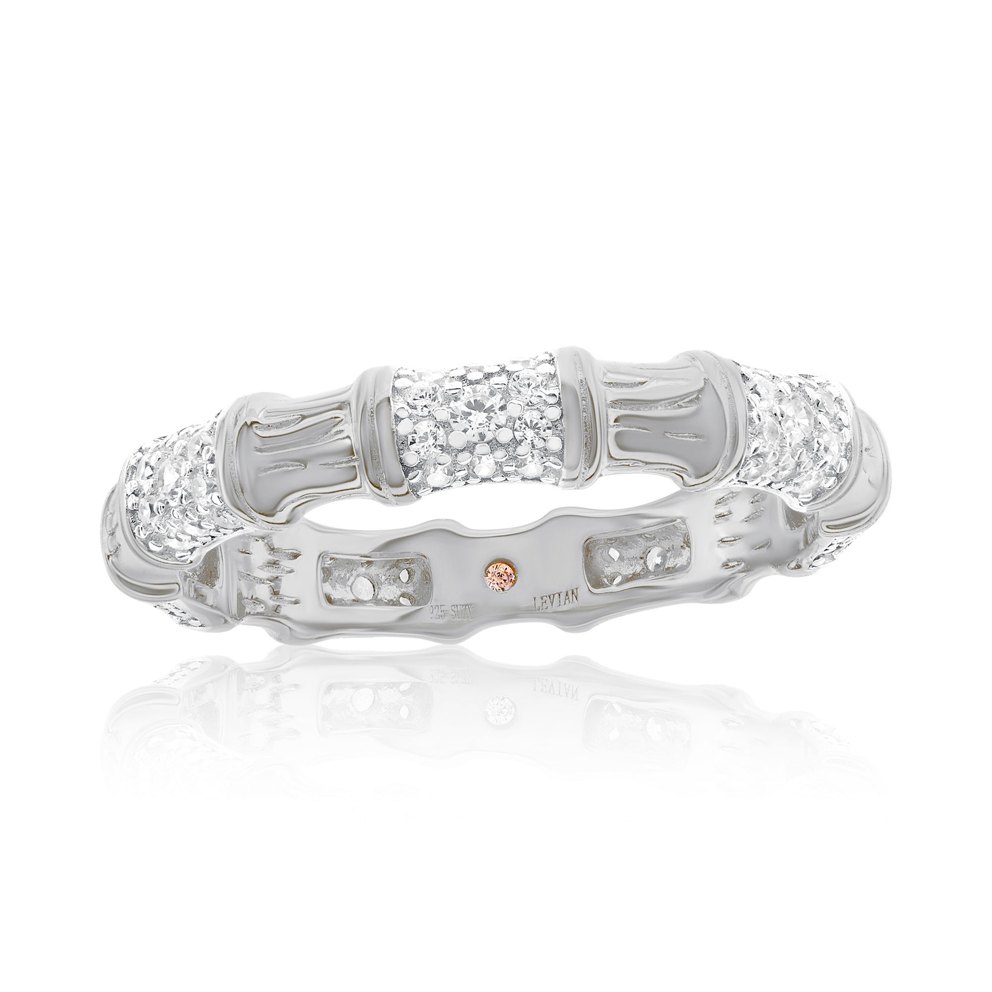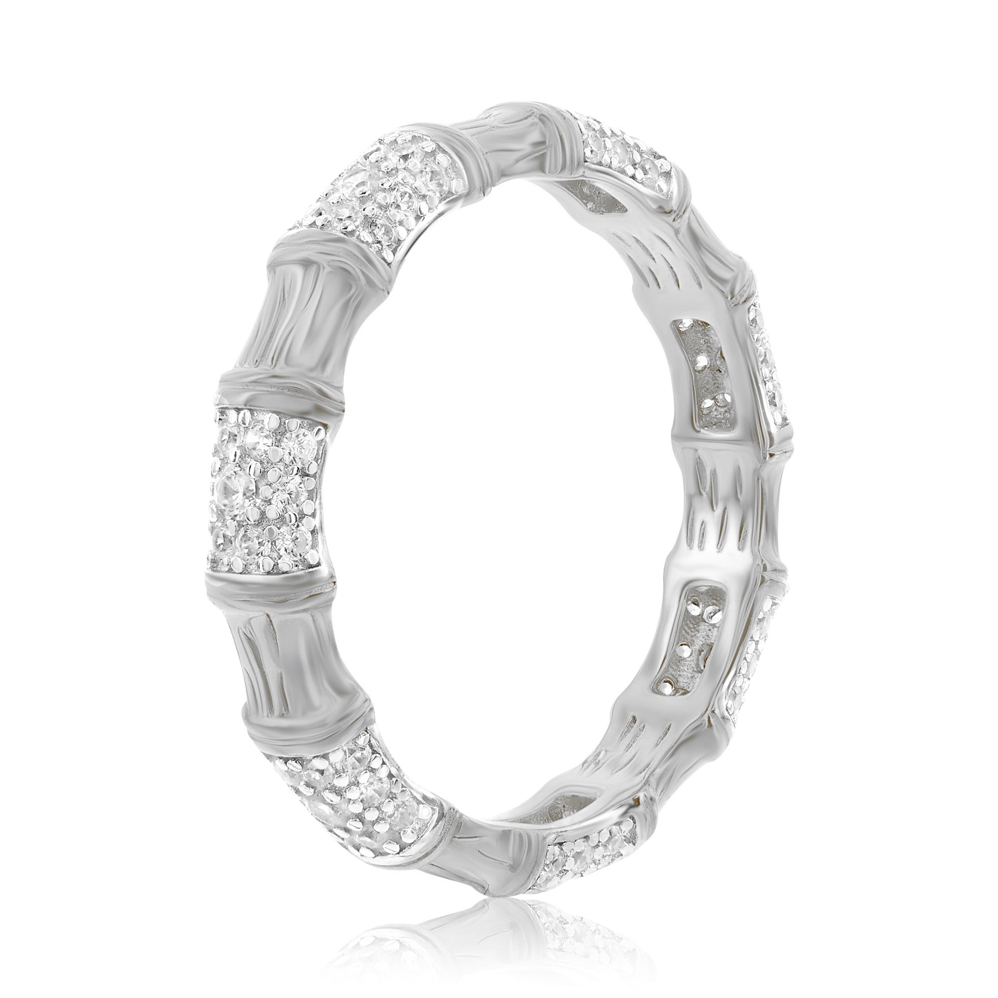 Suzy Levian Sterling Silver Cubic Zirconia Pave Bamboo Alternating Eternity Band