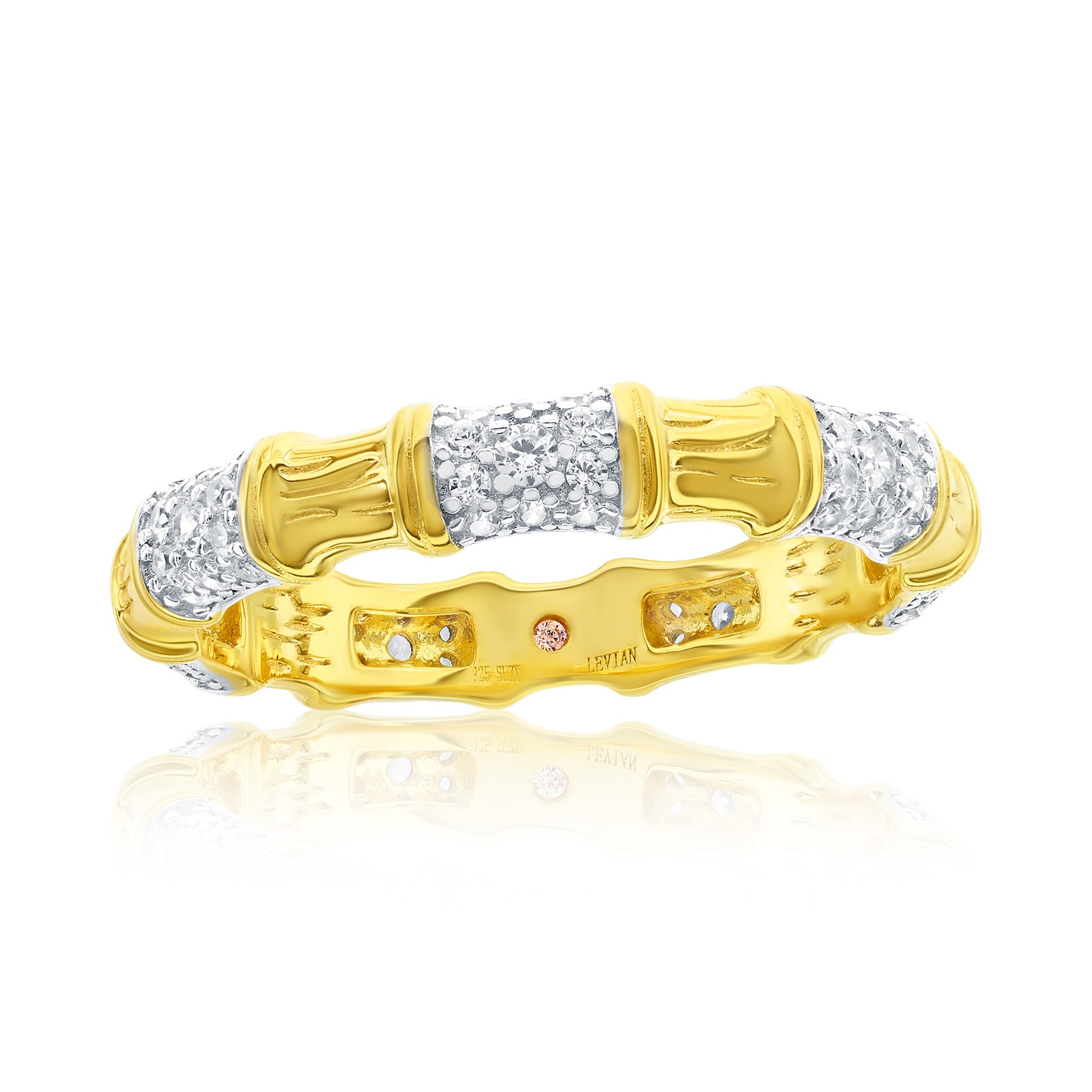 Suzy Levian Yellow Sterling Silver Cubic Zirconia Pave Bamboo Alternating Eternity Band